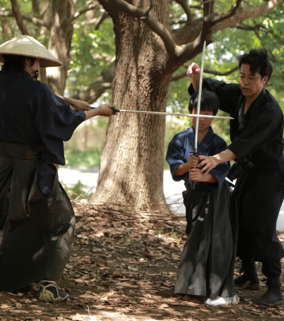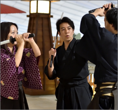 - 忍者・サムライのコスチュームに着替え、気分を盛り上げる